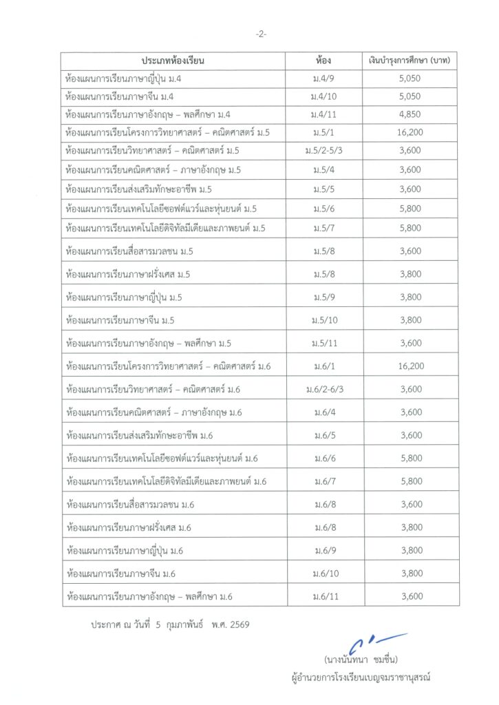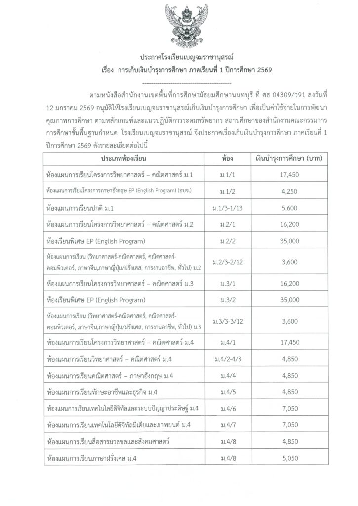 การเก็บเงินค่าบำรุงการศึกษา ภาคเรียนที่ 1 ปีการศึกษา 2569 10 กุมภาพันธ์ 2026Benjamarachanusornข่าวประชาสัมพันธ์