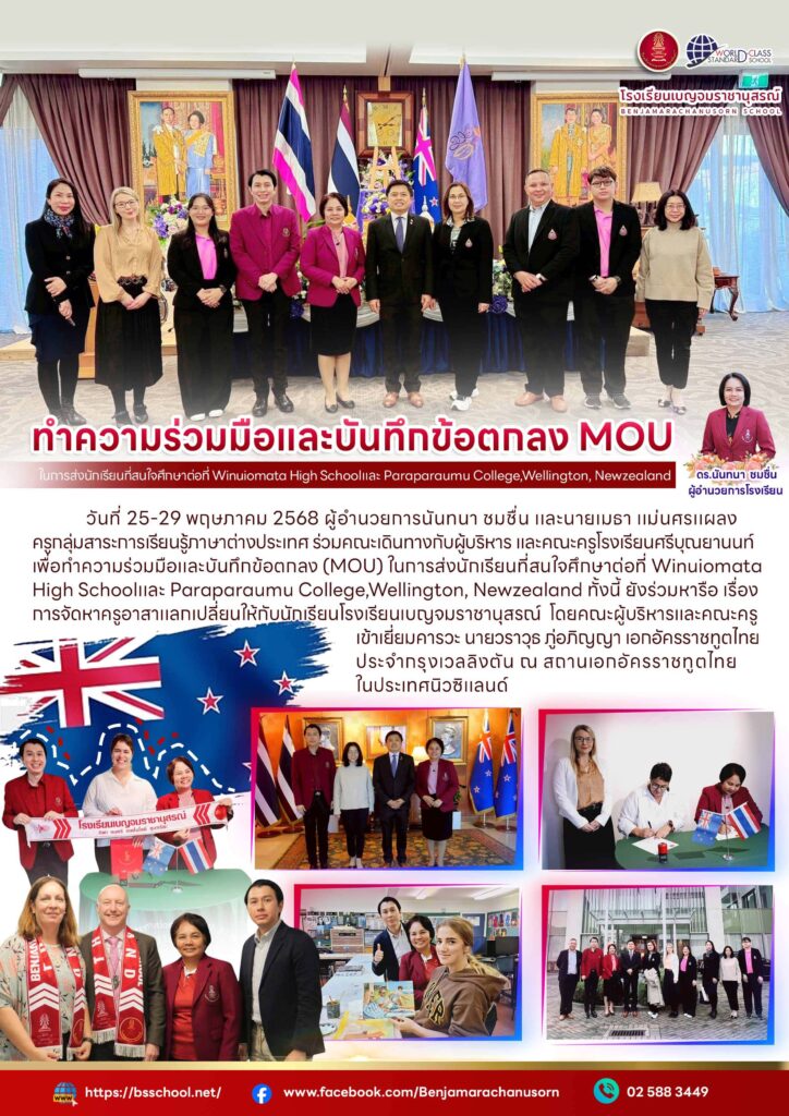 ทำความร่วมมือและบันทึกข้อตกลง MOU ในการส่งนักเรียนที่สนใจศึกษาต่อที่ Winuiomata High School และ Paraparaumu College,Newzealand