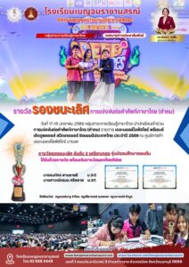 รางวัลรองชนะเลิศ การแข่งขันต่อคำศัพท์ภาษาไทย (คำคม) รายการเดอะมอลล์ไลฟ์สโตร์ พรีเซนต์ เอ็ดดูพลอยส์ สปีดเทรเชอร์ ชิงแชมป์ประเทศไทย ประจำปี 2569 26 มกราคม 2026Ketsarin Kirdsongจดหมายข่าวประชาสัมพันธ์