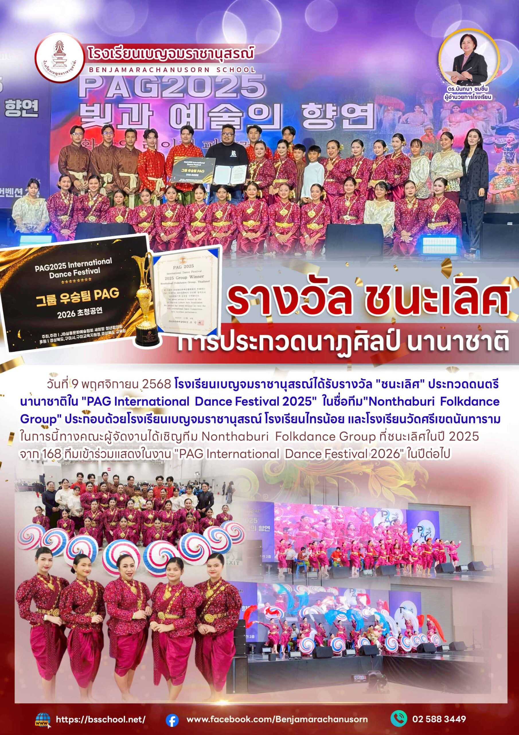รางวัล ชนะเลิศ การประกวดนาฏศิลป์ นานาชาติ 10 พฤศจิกายน 202510 พฤศจิกายน 2025Phatnaree Phophanจดหมายข่าวประชาสัมพันธ์, ผลงานนักเรียน
