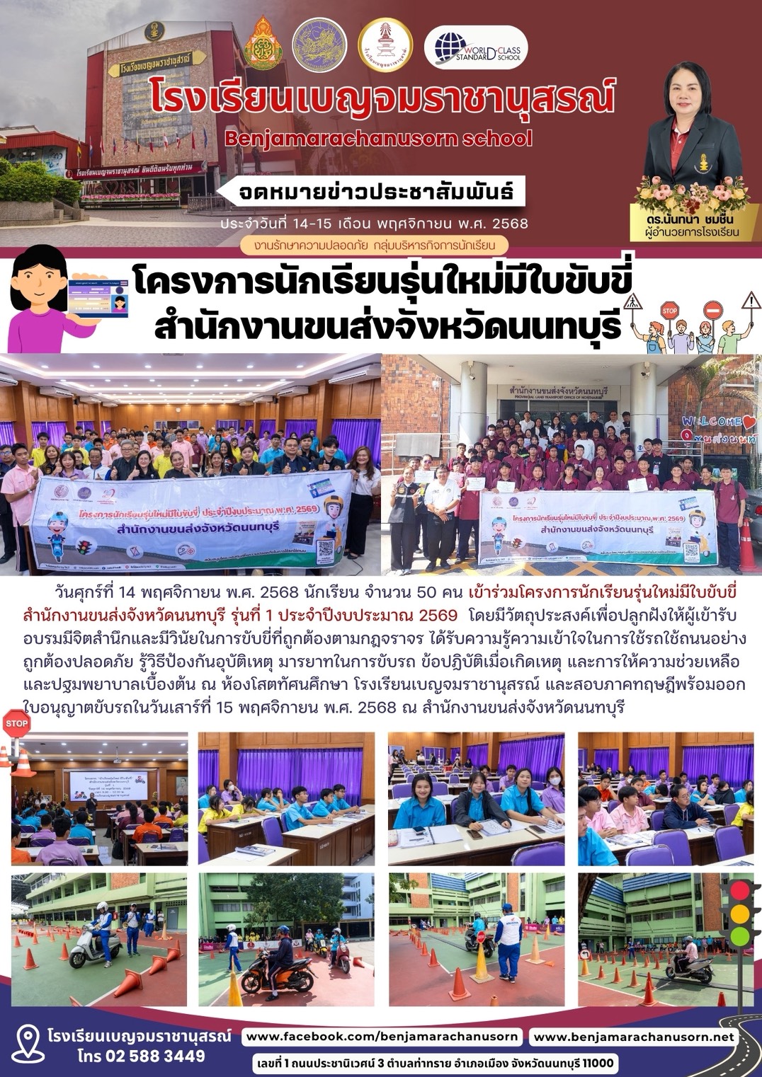 โครงการนักเรียนรุ่นใหม่มีใบขับขี่ สำนักงานขนส่งจังหวัดนนทบุรี