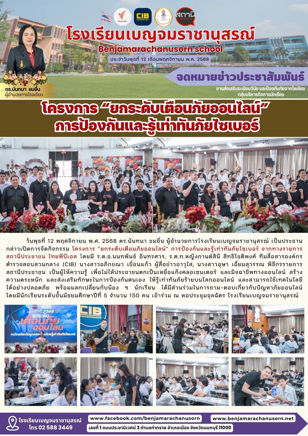โครงการ”ยกระดับเตือนภัยออนไลน์” การป้องกันและรู้เท่าทันภัยไซเบอร์ 19 พฤศจิกายน 2025Phatnaree Phophanจดหมายข่าวประชาสัมพันธ์