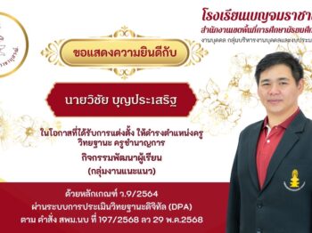 ขอแสดงความยินดีกับนายวิชัย บุญประเสริฐ ในโอกาสที่ได้รับการแต่งตั้ง ให้ดํารงตําแหน่งครู วิทยฐานะ ครูชํานาญการ กิจกรรมพัฒนาผู้เรียน (กลุ่มงานแนะแนว) 24 มิถุนายน 2025Phatnaree Phophanจดหมายข่าวประชาสัมพันธ์