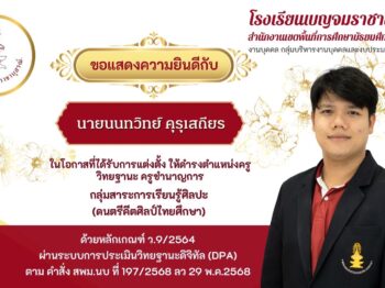 ขอแสดงความยินดีกับนายนนทวิทย์ คุรุเสถียร ในโอกาสที่ได้รับการแต่งตั้ง ให้ดํารงตําแหน่งครู วิทยฐานะ ครูชํานาญการ กลุ่มสาระการเรียนรู้ศิลปะ (ดนตรีคีตศิลป์ไทยศึกษา) 24 มิถุนายน 202524 มิถุนายน 2025Phatnaree Phophanจดหมายข่าวประชาสัมพันธ์