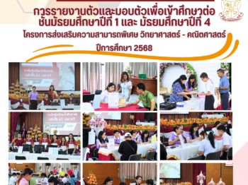 การรายงานตัวและมอบตัวเพื่อเข้าศึกษาต่อชั้นมัธยมศึกษาปีที่ 1 และมัธยมศึกษาปีที่ 4 โครงการส่งเสริมความสามารถพิเศษ วิทยาศาสตร์ – คณิตศาสตร์ ปีการศึกษา 2568 25 มีนาคม 202525 มีนาคม 2025Phatnaree Phophanจดหมายข่าวประชาสัมพันธ์