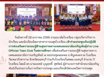 งานอนามัยโรงเรียนอและนักเรียนจิตอาสาสาธารณสุขโรงเรียน เข้าร่วมประชุมเชิงปฏิบัติการส่งเสริมความรอบรู้ด้านสุขภาพทางเพศ และอนามัยเจริญพันธุ์ Line Official Teen Club ในสถานศึกษา 30 มกราคม 20257 สิงหาคม 2025Phatnaree Phophanจดหมายข่าวประชาสัมพันธ์