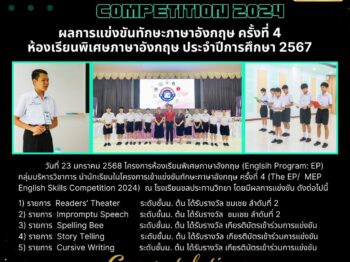 ผลการแข่งขันทักษะภาษาอังกฤษ ครั้งที่ 4 ห้องเรียนพิเศษภาษาอังกฤษ ประจำปีการศึกษา 2567 28 มกราคม 20257 สิงหาคม 2025Phatnaree Phophanจดหมายข่าวประชาสัมพันธ์