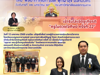 เข้าร่วมรับโล่เชิดชูเกียรติ “ครูในดวงใจศิษย์ ครั้งที่ 22” เนื่องในวันครูแห่งชาติ 19 มกราคม 202619 มกราคม 2026Ketsarin Kirdsongจดหมายข่าวประชาสัมพันธ์